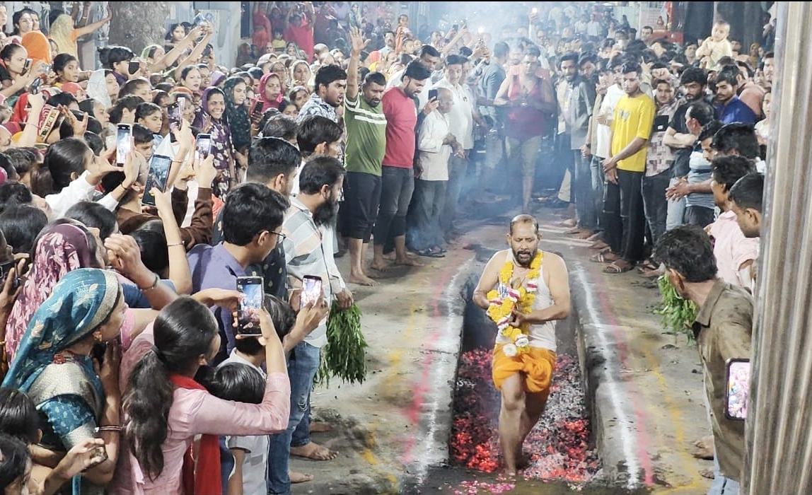 धधकते अंगारों पर आस्था की अग्नि परीक्षा: शीतला माता मंदिर के सामने भक्तों ने निभाई अनोखी धार्मिक परंपरा