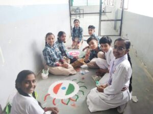 विद्यालय में रंगोली प्रतियोगिता का भी आयोजन किया गया, जिसमें विद्यार्थियों ने स्वाधीनता दिवस और तिरंगे के महत्व को दर्शित किया। रंगोली के माध्यम से विद्यार्थियों ने अपनी कलात्मक अभिव्यक्ति का प्रदर्शन किया और देशभक्ति की भावना को बढ़ावा दिया।