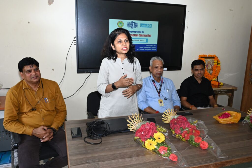 रतलाम 24 सितंबर/आपदा प्रबंध संस्थान भोपाल,गृह विभाग म.प्र.शासन एवं जिला प्रशासन रतलाम के संयुक्त तत्वाधान में एवं यूनिसेफ मध्यप्रदेश के सहयोग से आज 24 सितंबर को (तीन दिवसीय) भूकंपरोधी संरचना निर्माण विषयक प्रशिक्षण का शुभारम्भ शासकीय कला एवं विज्ञानं महाविद्यालय के सभाकक्ष में किया गया।