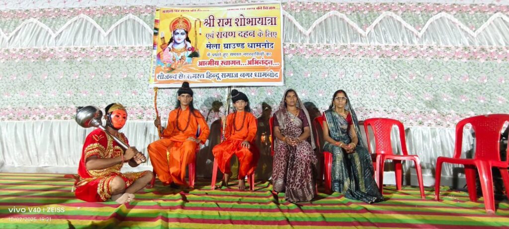 धामनोद। रतलाम जिले के धामनोद नगर में प्रति वर्ष अनुसार इस वर्ष नगर के युवाओं व्दारा प्रखंड विद्वान पंडित दशानन्द रावण का दहन बुराई का प्रतीक के रूप में किया गया। असत्य पर सत्य की विजय का प्रतीक विजय दशमी पर राक्षसी रूपी महान ज्ञानी पंडित दशानंद रावण का दहन हुआ। 2 अक्टूबर विजयादशमी पर आतिशबाजी कर रावण दहन हुआ। वार्ड क्रमांक 02 के मेला ग्राउंड में कार्यक्रम आयोजित किया गया। सर्वप्रथम श्री राम, लक्ष्मण और हनुमान जी के स्वरूप रथ पर बैठकर शोभायात्रा के रूप में नगर में निकले पश्चात मेला ग्राउंड में शोभा यात्रा का समापन हुआ।
