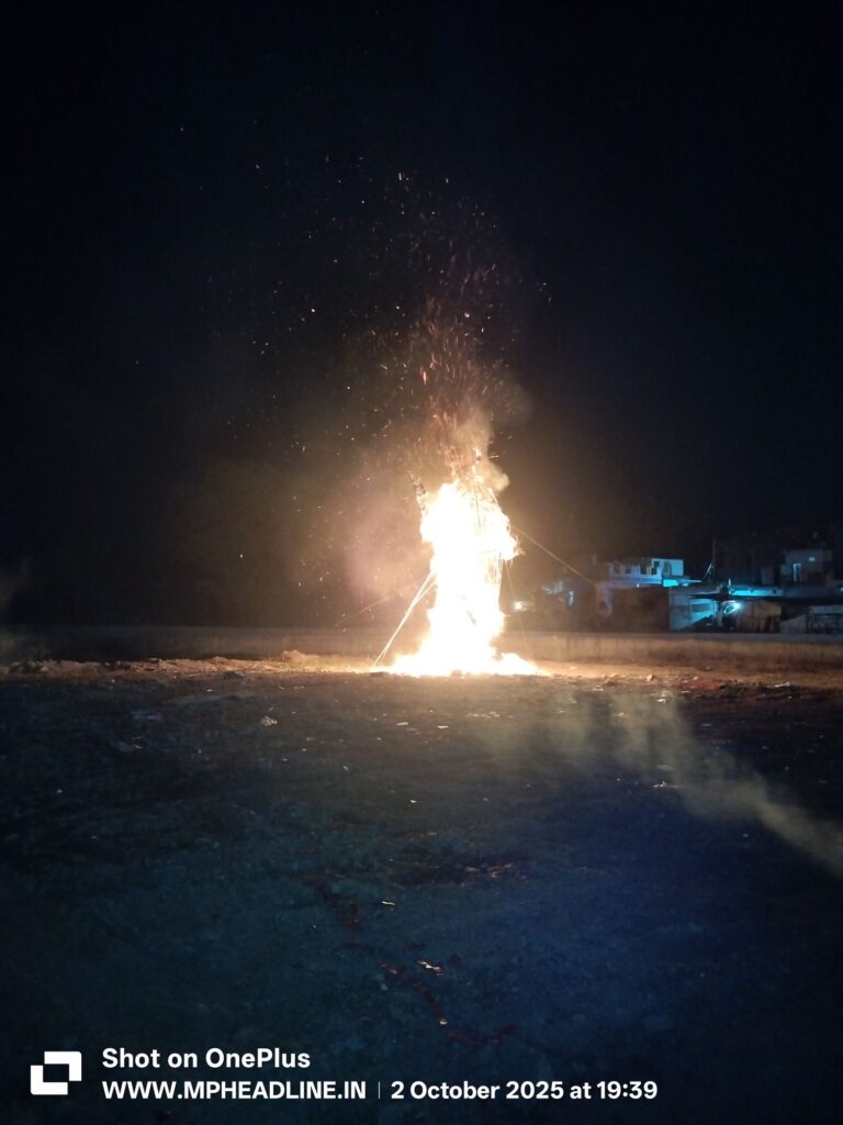 दशानन्द रावण अपने अहम अहंकार में अपना सीना ताने खड़े 21 फीट के रावण का दहन श्री रामजी ने को तीर मार कर (छोड़कर ) रावण के अंह को अंततः दहन कर समाप्त रावण दहन कार्यक्रम के मुख्य अतिथि के रूप में नगर परिषद अध्यक्ष श्रीमती दुर्गा अजय डिंडोर ,वार्ड क्रमांक 02 पार्षद श्रीमती लीला दुर्गेश पंवार उपस्थित रहे।