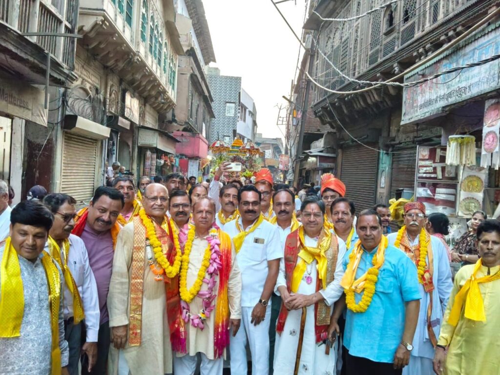 मथुरा में आज से तीर्थ पुरोहित महासंघ संयोजन में श्रीकृष्ण बलराम शोभायात्रा तथा विश्राम घाट मथुरा पर जमुना मैया की पूजन एवं संध्या आरती कर श्री कृष्ण गुरुकुल शिक्षा यात्रा का शंखनाद हुआ श्री श्रीजी बाबा आश्रम से एक भव्य शोभा यात्रा प्रारंभ हुई जो मथुरा शहर के विभिन्न मार्गो से होती हुई विश्राम घाट मथुरा पहुंची जहां पर जमुना जी का पूजन कर आरती की गई शोभा यात्रा का संपूर्ण शोभायात्रा मार्ग मथुरा में जगह-जगह पर भव्य स्वागत अभिनंदन हुआ।