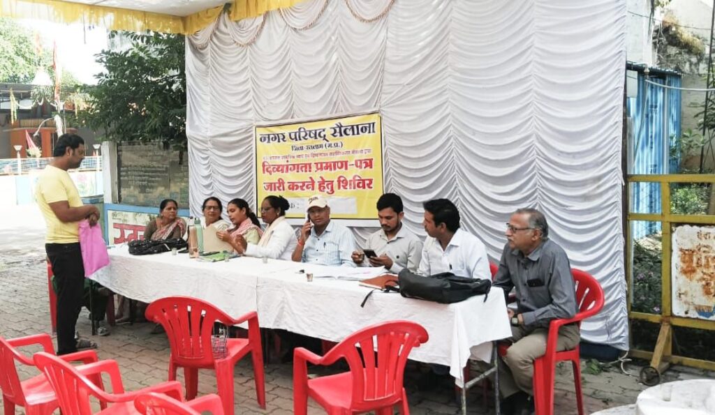 सैलाना। रतलाम जिले के सैलाना में शासन के निर्देशानुसार सम्पूर्ण प्रदेश में दिव्यांगता प्रमाण पत्र अभियान का आयोजन दिनांक 08 अक्टुबर 2025 से 09 अक्टूबर 2025 तक आयोजित किया गया।इस क्रम में नगर परिषद सैलाना द्वारा दिव्यांगता प्रमाण पत्र शिविर का आयेजन नगर परिषद परिसर में किया गया, शिविर का शुभारंभ चैतन्य शुक्ला अध्यक्ष नगर परिषद सैलाना द्वारा किया गया।