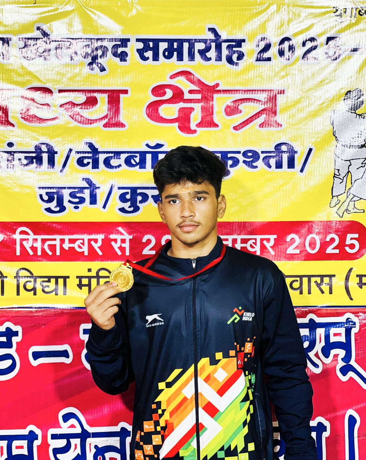 सैलाना। मोक्ष पाटीदार ने सैलाना नगर को किया गोरवान्वित रतलाम जिले के सैलाना नगर के प्रतिभावान विद्यार्थी मोक्ष द दशरथ पाटीदार जो कि वर्तमान में शारदा विहार भोपाल में अध्ययनरत है ने विद्या भारती द्वारा भोपाल में आयोजित नेशनल कुश्ती प्रतियोगिता आयोजित कि गई थी इस कुश्ती प्रतियोगिता के फाइनल में मोक्ष पिता दशरथ पाटीदार ने (अण्डर 17 )में आल इण्डिया नेशनल कुश्ति में चेपियन (अखिल भारतीय कुश्ती में प्रथम स्थान (गोल्ड मेडल) वजन 60 kg. शारदा विहार विद्या मंदिर भोपाल ने गोल्ड मैडल अपने नाम किया।