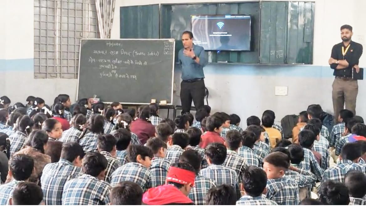 सैलाना। एक जिम्मेदार नागरिक वही है जो स्वयं सुरक्षित रहे ,और दूसरों को भी सुरक्षा के लिए प्रेरित करे।भारत वर्तमान में सड़क दुर्घटनाओं..की विश्व राजधानी बन गया है..हमारी सड़के आज भारत की सबसे खतरनाक जगह बन गई है..हमे यहाँ सबसे ज़्यादा सावधानी और सतर्कता की आवश्यकता है। विद्यार्थियों को यातायात नियमों का पालन करने की समझाइश और उसका महत्त्व बताते हुए यह बात प्राचार्य गिरीश सारस्वत द्वारा कही गई। उन्होंने विद्यार्थियों को यातायात नियमों को लेकर पुलिस एवं प्रशासन द्वारा किए जा रहे प्रयासों की जानकारी भी दी। विषय प्रवर्तन कार्यक्रम के संयोजक योगेश परमार द्वारा किया गया।
