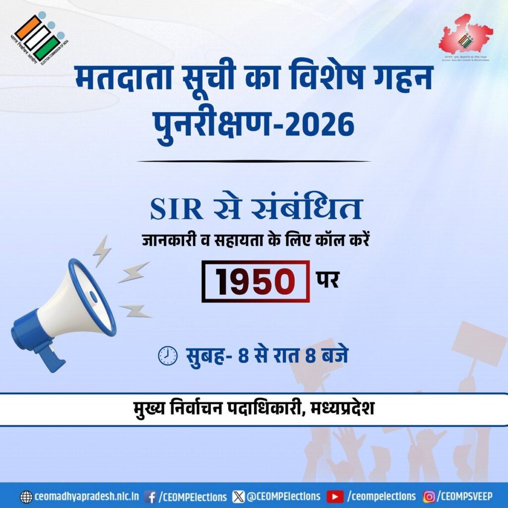रतलाम 20 नवंबर/ जिले में निर्वाचक नामावली का विशेष गहन पुनरीक्षण 2026 (SIR) का कार्य किया जा रहा है। मुख्य निर्वाचन पदाधिकारी मध्यप्रदेश भोपाल द्वारा मतदाताओ हेतु SIR-2003 की निर्वाचक नामावली में स्वयं अथवा अपने परिवारजनों के नाम खोजने की सुविधा उपलब्ध कराई गई है। जिस हेतु मुख्य निर्वाचन पदाधिकारी मध्यप्रदेश भोपाल के 02 पोर्टल कमशः https://ceoelection.mp.gov.in एवं https://voters.eci.gov.in उपलब्ध है। उक्त दोनों पोर्टल पर मतदाता द्वारा स्वंय अथवा अपने परिवारजनों के नाम खोजने की चरणबद्ध प्रक्रिया निम्नानुसार है :-