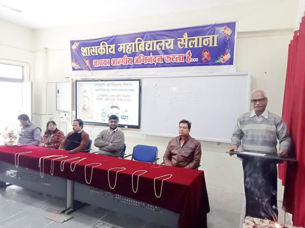 उक्त संबोधन शासकीय महाविद्यालय सैलाना में मुख्य अतिथि के रूप में सैलाना तहसीलदार कुलभूषण शर्मा ने स्वामी विवेकानंद करिअर मार्गदर्शन प्रकोष्ठ द्वारा आयोजित ब्यूटी पार्लर प्रशिक्षण कार्यक्रम के शुभारंभ अवसर पर दिया।