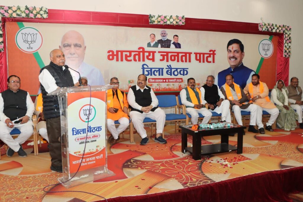 रतलाम, 10/01/2026। भारतीय जनता पार्टी के प्रदेश अध्यक्ष व विधायक श्री हेमंत खण्डेलवाल ने शनिवार को रतलाम के अतिथि गार्डन में पार्टी की जिला बैठक, वीबी-जी रामजी जनजागरण अभियान, छोटी टोली के साथ सोशल मीडिया, आईटी टोली और मन की बात टोली की बैठकों को संबोधित करते हुए कहा कि भारतीय जनता पार्टी की सबसे बड़ी मजबूती संगठन शक्ति है। हमें अपने संगठन को और मजबूत बनाने के लिए बूथ स्तर तक योजना बनाकर संगठनात्मक कार्यों को आगे बढ़ाना है। मजबूत संगठन से ही सशक्त लोकतंत्र का निर्माण होता है। वरिष्ठ कार्यकर्ताओं की अटूट निष्ठा, अथक परिश्रम और वैचारिक प्रतिबद्धता के साथ संघर्ष, त्याग और विचारधारा के कारण आज भाजपा विश्व का सबसे बड़ा राजनीतिक संगठन बनकर देश और समाज का मार्गदर्शन कर रही है।