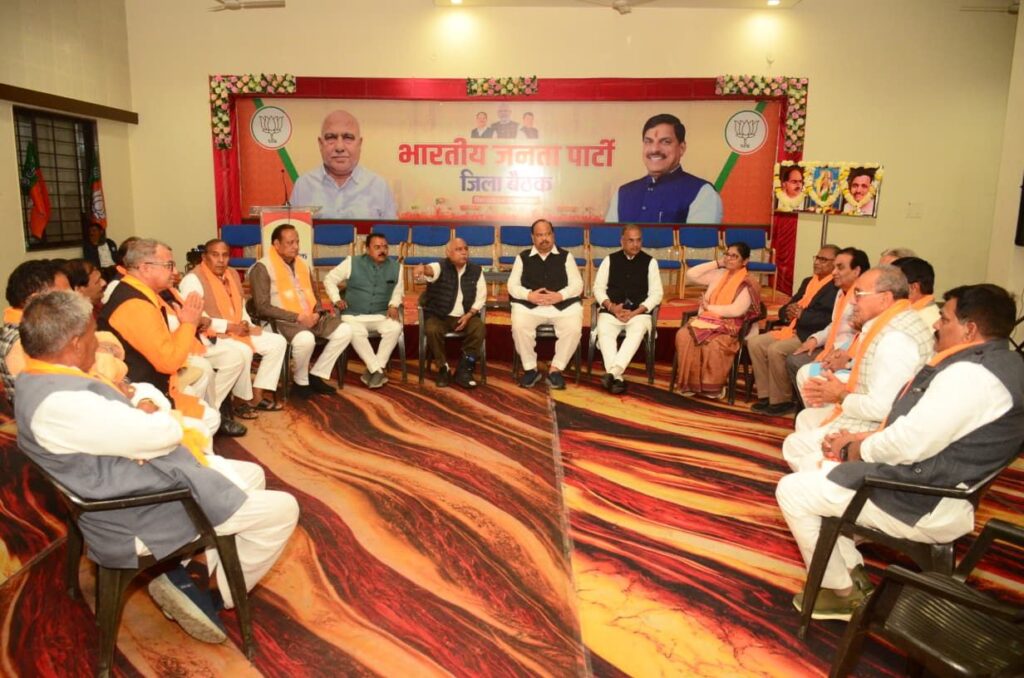 बैठक में मध्यप्रदेश शासन के मंत्री श्री चेतन्य काश्यप, संभाग प्रभारी श्री सुरेश आर्य, सांसद श्री सुधीर गुप्ता, श्री प्रदीप पांडेय, जिला अध्यक्ष श्री प्रदीप उपाध्याय, विधायक श्री राजेंद्र पांडेय, श्री मथुरालाल डामर एवं श्री चिंतामणि मालवीय सहित अन्य पदाधिकारी एवं कार्यकर्ता उपस्थित रहे।