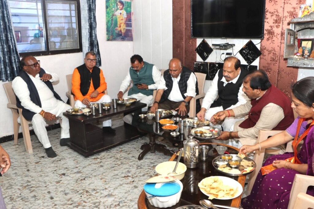 भाजपा के प्रदेश अध्यक्ष श्री हेमंत खण्डेलवाल ने रतलाम जिले के सखवाल नगर के डॉ. भीमराव अंबेडकर मंडल के बूथ क्रमांक 55 के बूथ अध्यक्ष श्री अमन बोयत के निवास पहुंचकर भोजन कर परिजनों से भेंट की।