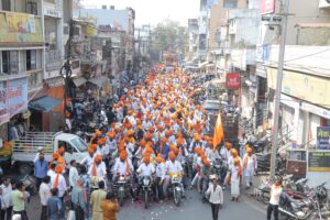 रतलाम। महाशिवरात्रि पर्व के उपलक्ष्य में शनिवार को शहर की जवाहर व्यायामशाला परिवार अम्बर ग्रुप द्वारा साफा रैली निकाली गई। रैली ने 4 किमी की दूरी 3 घंटे में तय की, रैली में डीजे की धून पर मोटरसाइकिल पर सवार होकर हजारों की संख्या में युवा केसरिया साफा बांधकर चल रहें थे। रैली में मातृ शक्ति भी उत्साह के साथ शामिल हुई। इस वर्ष जोधपुर और पाली राजस्थान से लगभग 5000 साफे मंगवाए गए।