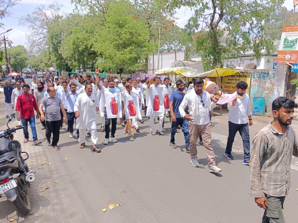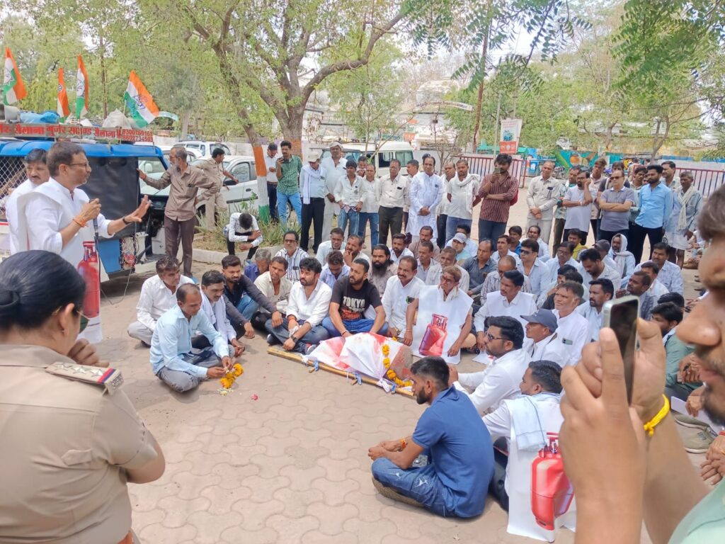 सैलाना। प्रदेश कांग्रेस अध्यक्ष जीतू पटवारी के आह्वान पर मंगलवार को सैलाना नगर में कांग्रेस कार्यकर्ताओं ने बढ़ती महंगाई, गैस सिलेंडर के दामों में वृद्धि, बिजली दरों में बढ़ोतरी, गेहूं के समर्थन मूल्य में कमी एवं पेट्रोल-डीजल की किल्लत जैसे मुद्दों को लेकर अनूठा विरोध प्रदर्शन किया। इस दौरान कार्यकर्ताओं ने गैस टंकी की अर्थी निकालकर सरकार के खिलाफ जमकर नारेबाजी की।
