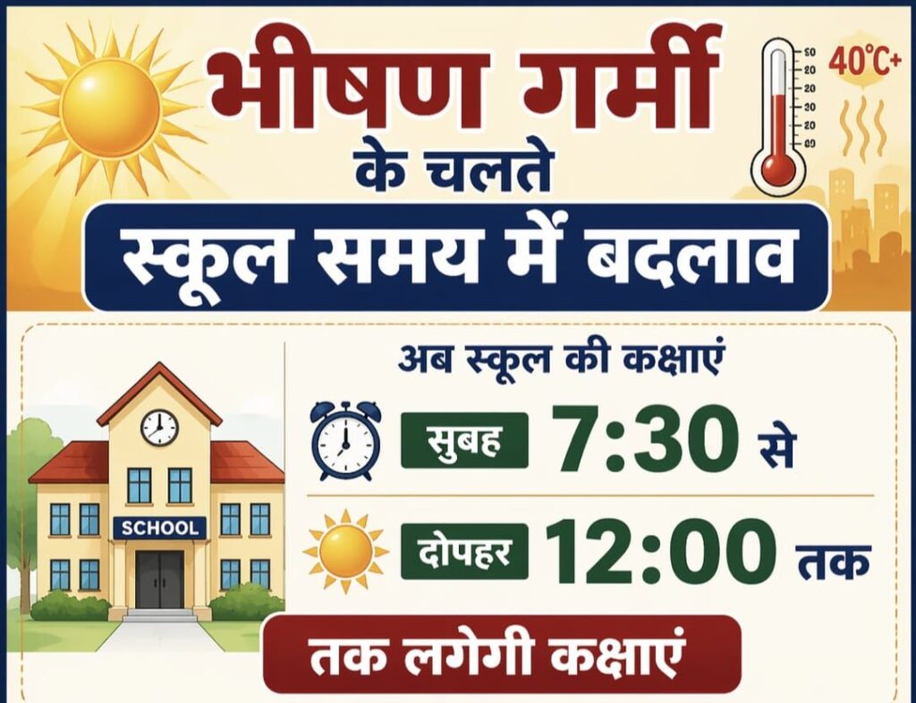 अब जिले के सभी शासकीय और अशासकीय विद्यालयों में छात्र-छात्राओं की कक्षाएं सुबह 7:30 बजे से दोपहर 12:00 बजे तक संचालित होंगी। वहीं शिक्षकों के लिए समय और बढ़ा दिया गया है — उन्हें अब सुबह 7:00 बजे से दोपहर 1:30 बजे तक विद्यालय में उपस्थित रहना होगा।
