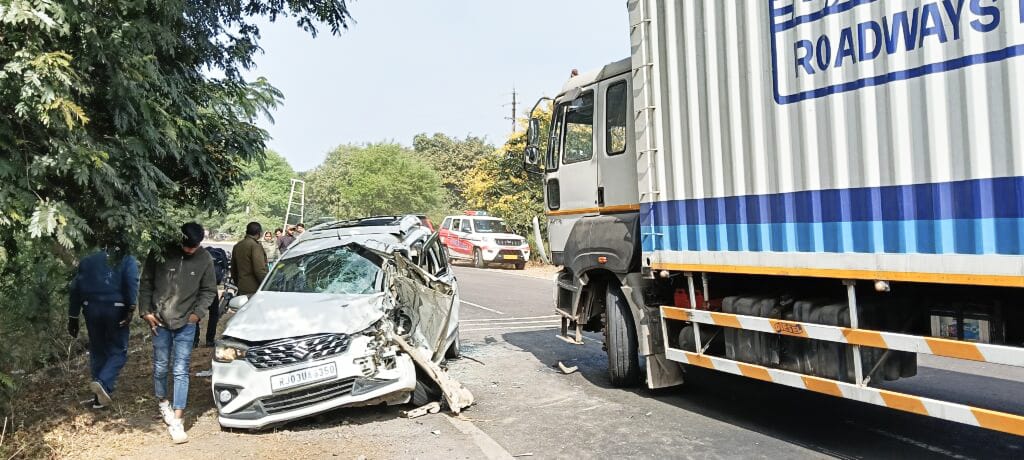 आमने-सामने की भिड़ंत, कार बुरी तरह क्षतिग्रस्त,